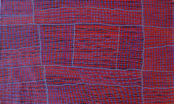 Aileen Sandy is a Yindjibarndi artist from Roebourne. A member of a prominent family of Yindjibarndi artists, Aileen's mother comes from the Millstream Tablelands, and her father's country is around Mt Florence Station. Aileen's artwork is known for its distinctive straight lines, circles and dots, and depicts her traditional country around the Millstream Tablelands and the Fortescue River. Incorporating influences from basketry and weaving, Aileen's works display a blend of dotting and more contemporary influences. Earth reds and the varied colours that course across the Fortescue rock faces can be found in her work, often with river sand incorporated into her paint to achieve a textured effect on canvas. Since the start of her practice in early 2007, Aileen's works have won the Cossack Art Awards, Northwest Landscape Painting category (2010) and Painting by a Pilbara Indigenous Artist (2013), been acquired by the Art Gallery of Western Australia (2011), and commissioned by the Ritz-Carlton Hotel Company in Perth (2019).