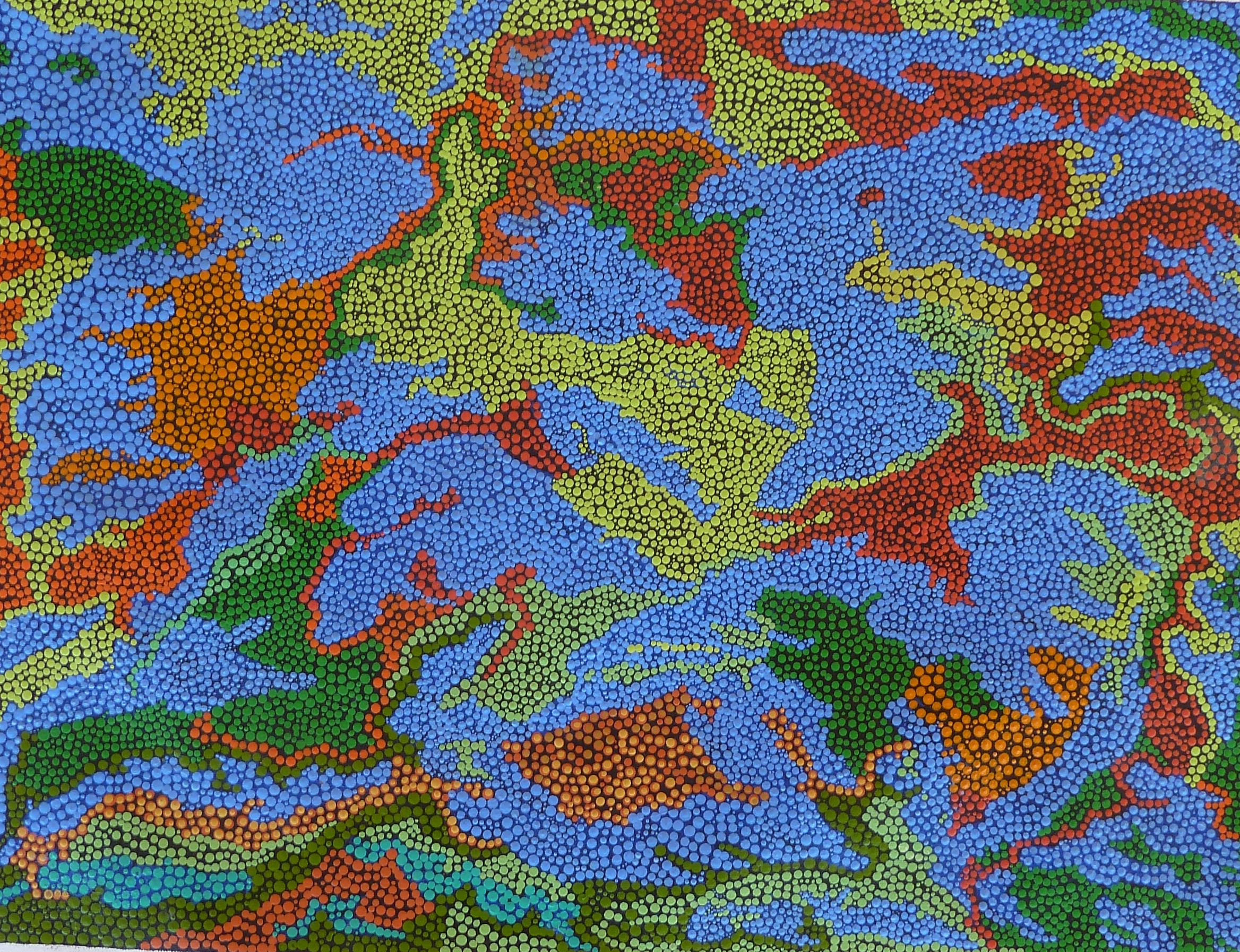 Alicia Sandy is a Yindjibarndi artist from Roebourne who is now based at Cheeditha Community. She began painting in 2006 and is the daughter of Janice Sandy. An emerging artist, she has exhibited in group shows in the Pilbara, Perth and Spain; and has received a highly commended at the Cossack Art Awards (2006).