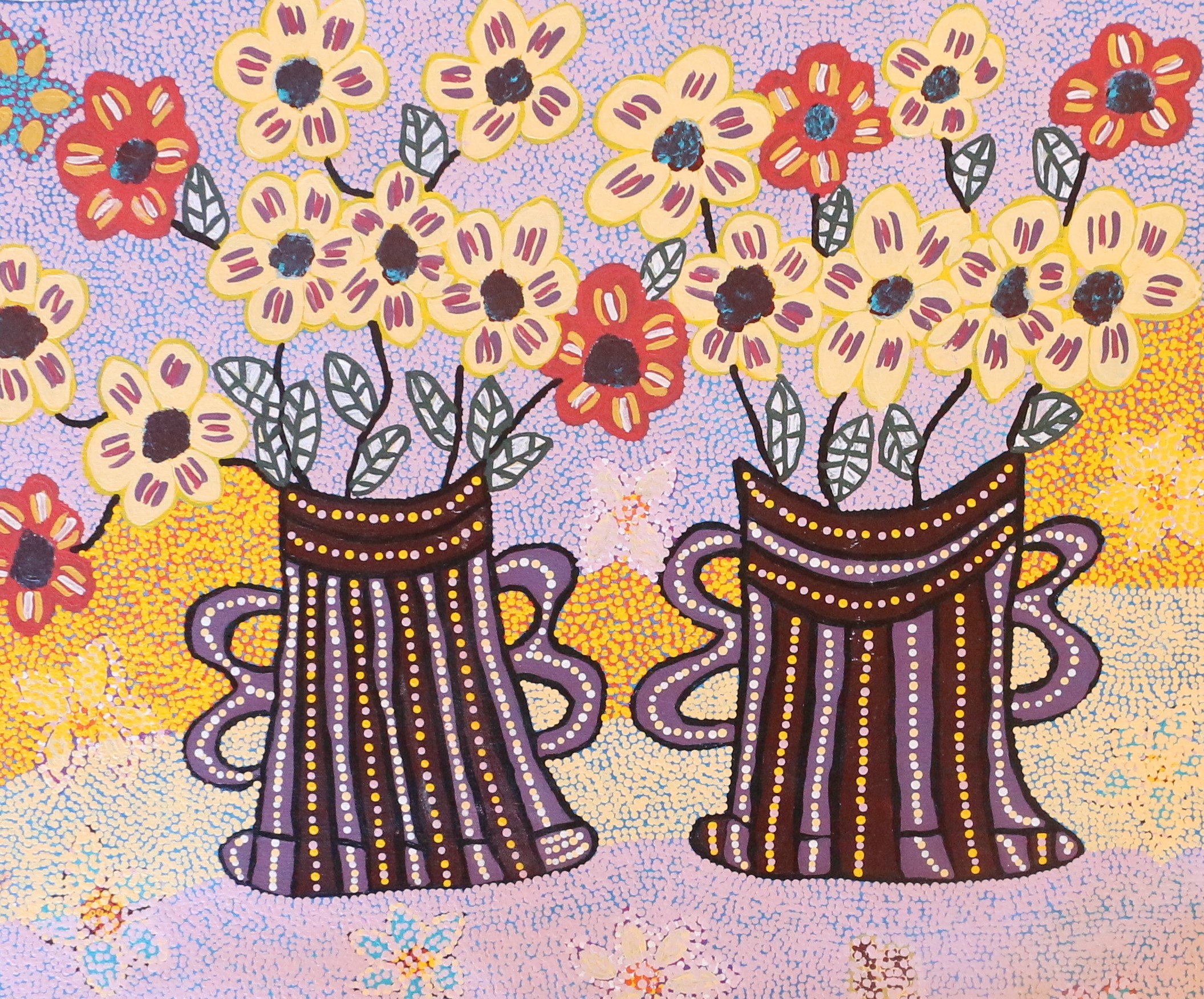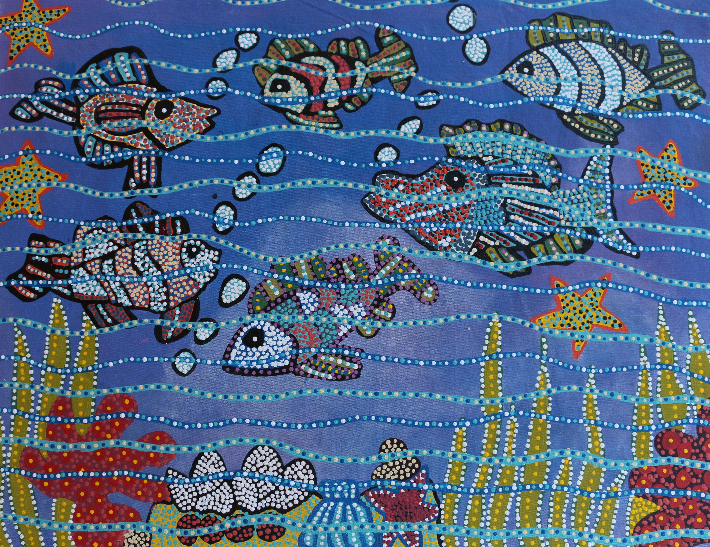 Danii-Rae Wilson is a Yindjibarndi artist who was born in Port Hedland. Her mother's Country is Roebourne and her father is from Port Hedland. Danii-Rae began painting in 2017 and favours bright, bold colours, rendering flowers, fish, turtles and parrots in a unique and contemporary style. Sometimes, Danii-Rae overlays her birds and sea life with dot work.