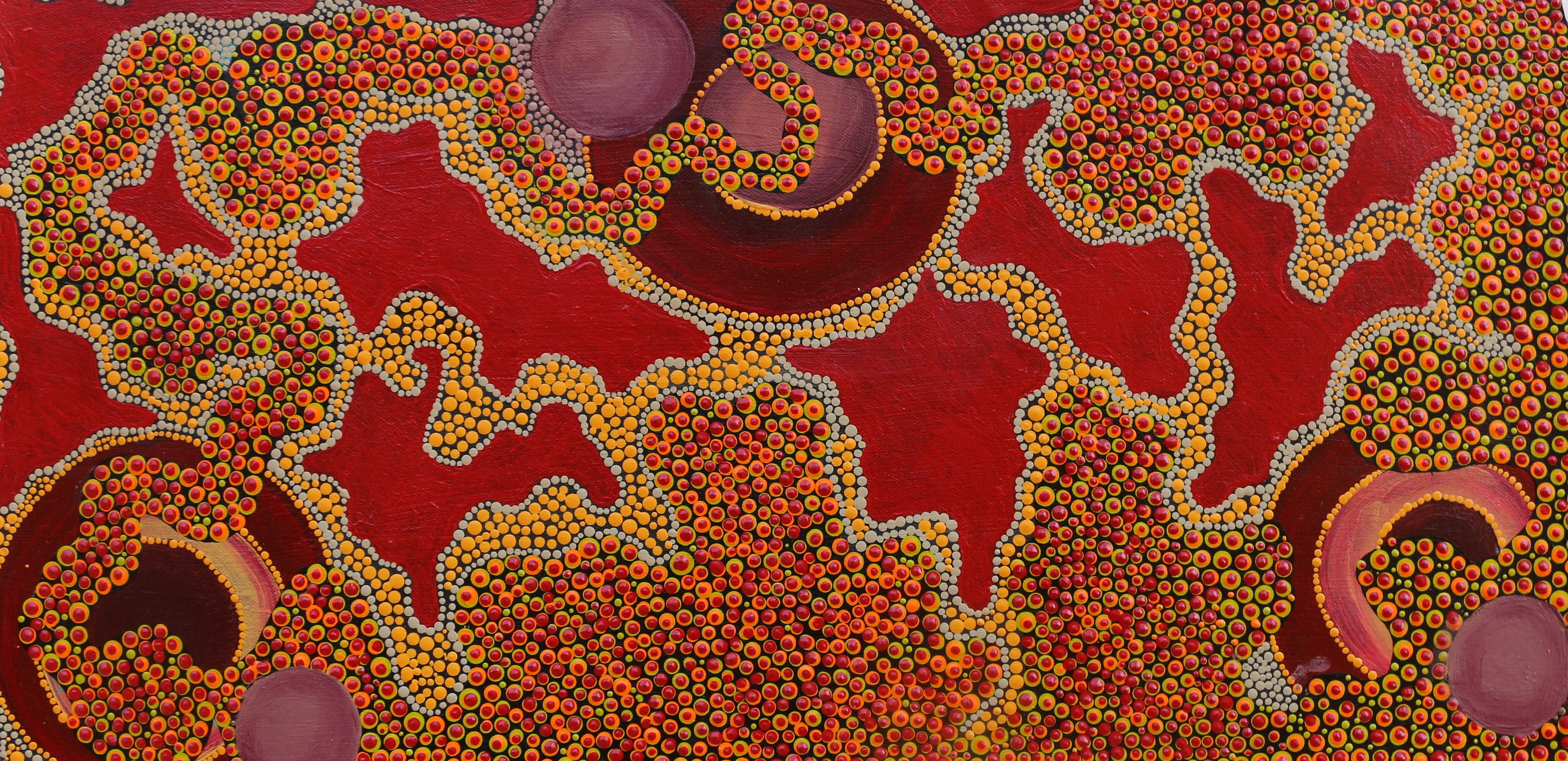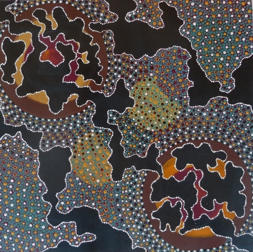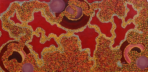 Donna Willis is Yindjibarndi artist from Roebourne who began her art career in early 2006. Donna paints the coastal country of the Pilbara and her father and grandfather's Country further inland, depicting the freshwater holes where they fished, as well as Sturt's Desert Pea, Mulla Mulla, and other varieties of the abundant flora that grows there. Donna has exhibited her artworks in the Pilbara and Perth and she won the Pilbara Landscape Prize in the 2009 Cossack Art Awards for her painting When the Rivers Run
